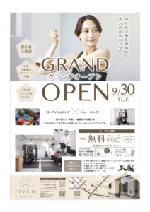 パーソナルジムFIVE Mグランドオープンのお知らせ
